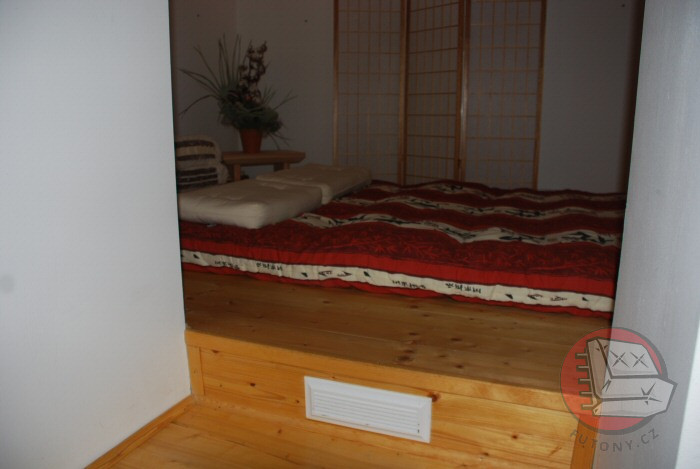 Sofa Tanuki 90x200cm, futon latex, osvětlení Folio, paravan přírodní (2015)